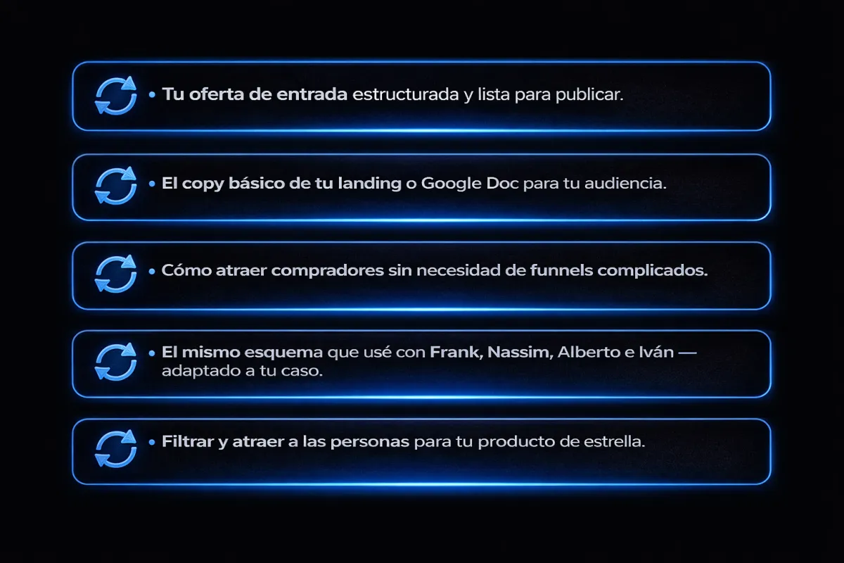 No se trata solo de aprender más teoría, sino de que termines con una oferta que vende y un sistema que funciona.